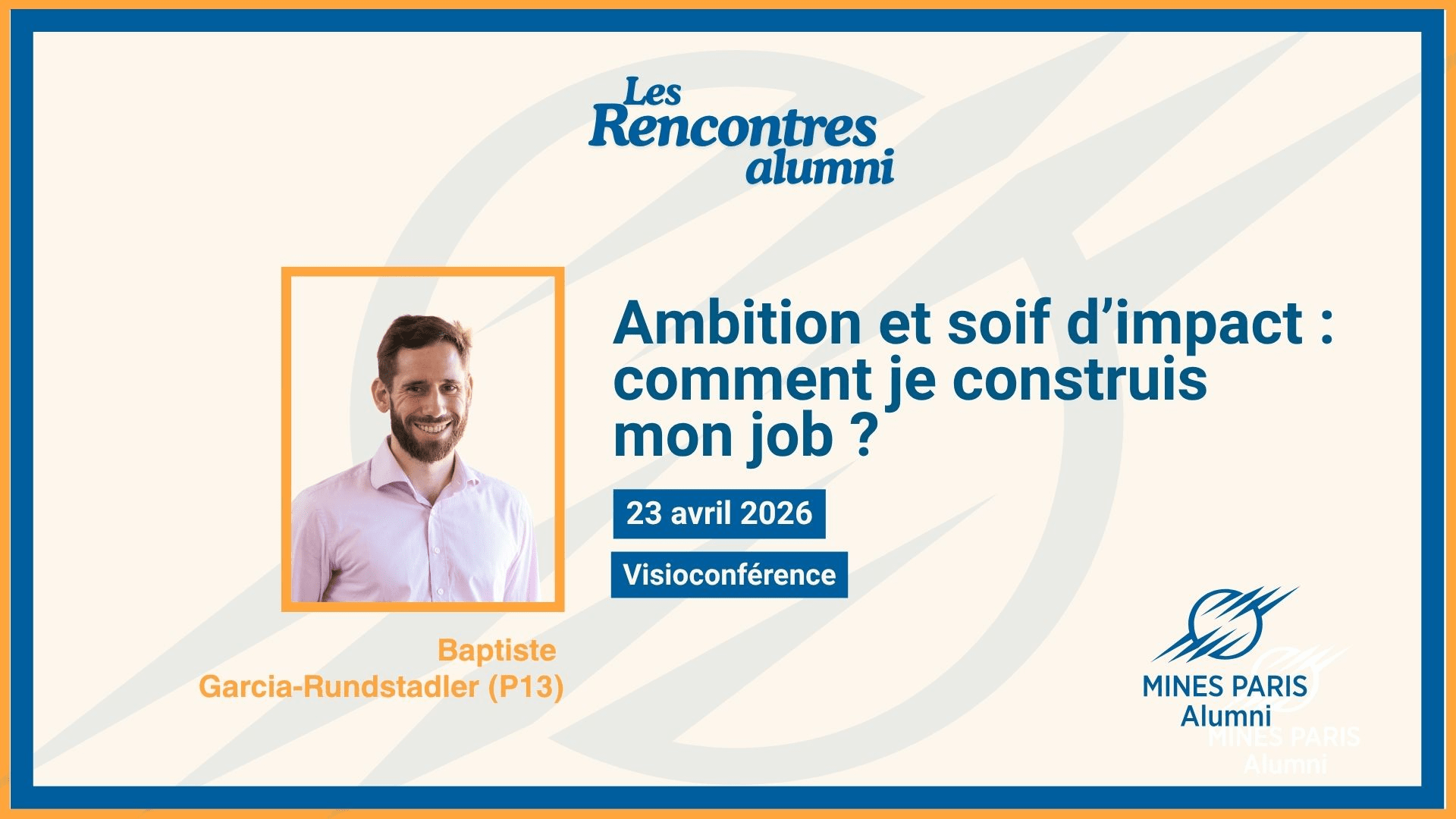Les Rencontres Mines Paris Alumni sont un événement mensuel donnant la parole à un alumni du réseau. Retrouvez l'ensemble de la programmation en cliquant ici.