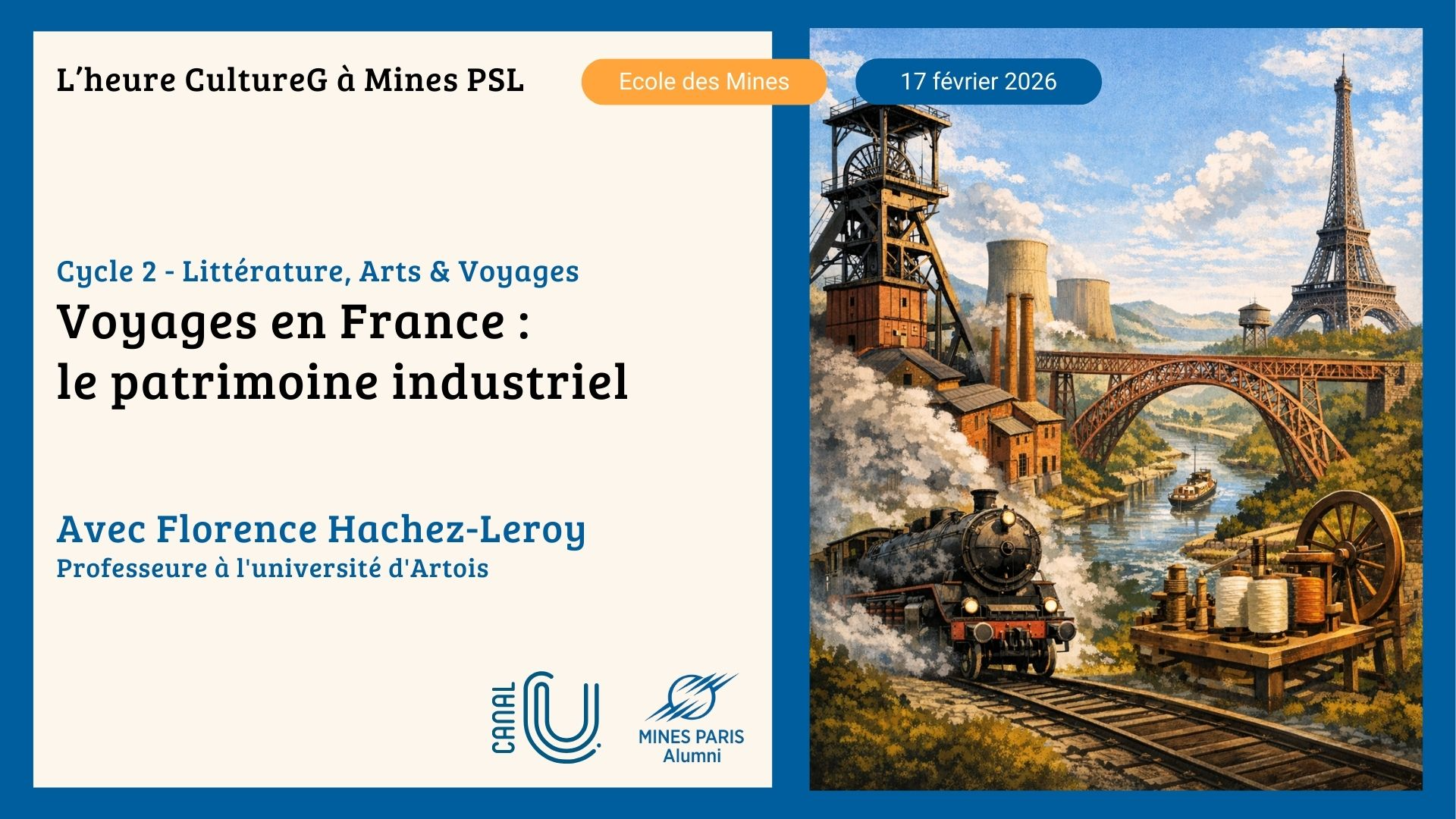 Mines Paris Alumni et Mines Paris - PSL, en partenariat avec Canal-U (la WebTV des universités), s'associent pour créer un moment régulier de diffusion de la connaissance et de convivialité, via des conférences grand public de culture générale, à l'instar de ce qui existe déjà sur www.cultureGnum.fr (120 vidéos FMSH / Canal-U, depuis 2016). Un premier cycle a été Littérature, lors du premier quadrimestre septembre-décembre. Un deuxième cycle janvier-juin 2026 s'intitule Littérature, Art & Voyages.